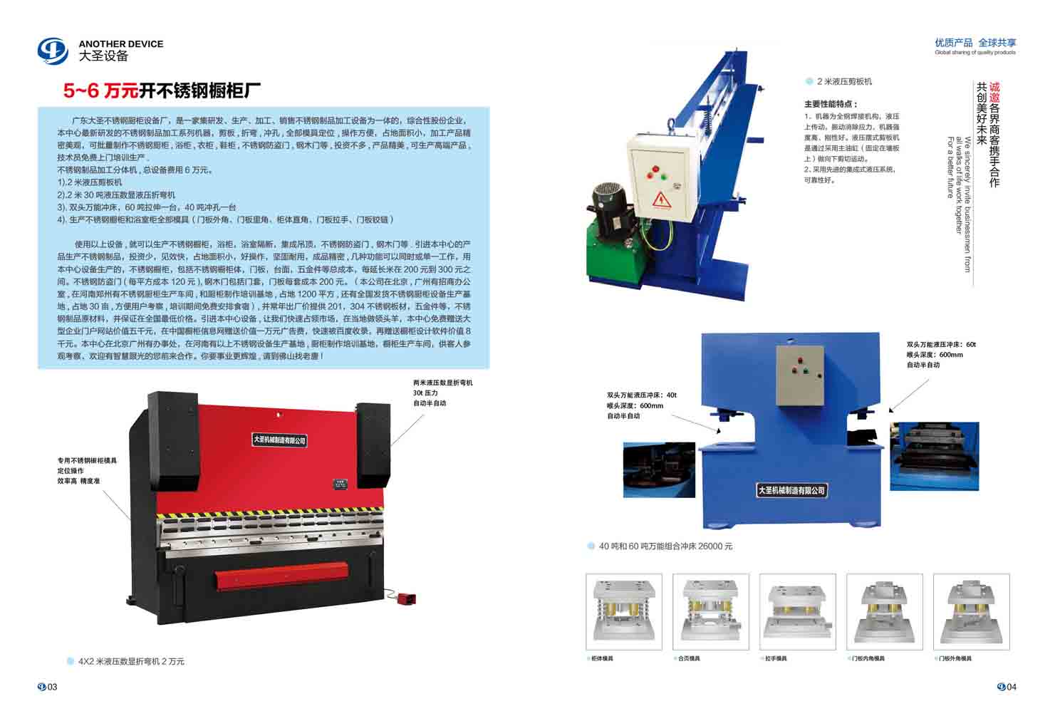 • 六萬元開不銹鋼櫥柜廠,剪板機,折彎,機雙頭自動沖床全部模具